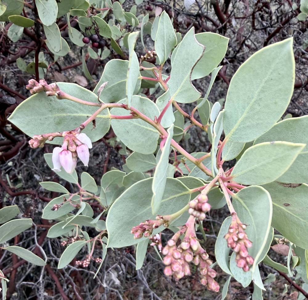 Seventeen of us hiked at Emigrant Lake on the Songer Butte Loop Trail below Songer Butte. We followed a loop by Songer Butte, towards Songer Wayside and returned by Little Songer Rocks. Most of the hike passed through manzanita, some areas so dense as to be “tunnels”. In open areas, we enjoyed many views eastward to mostly dry, brown mountains and northward to mountains covered with evergreen stands.