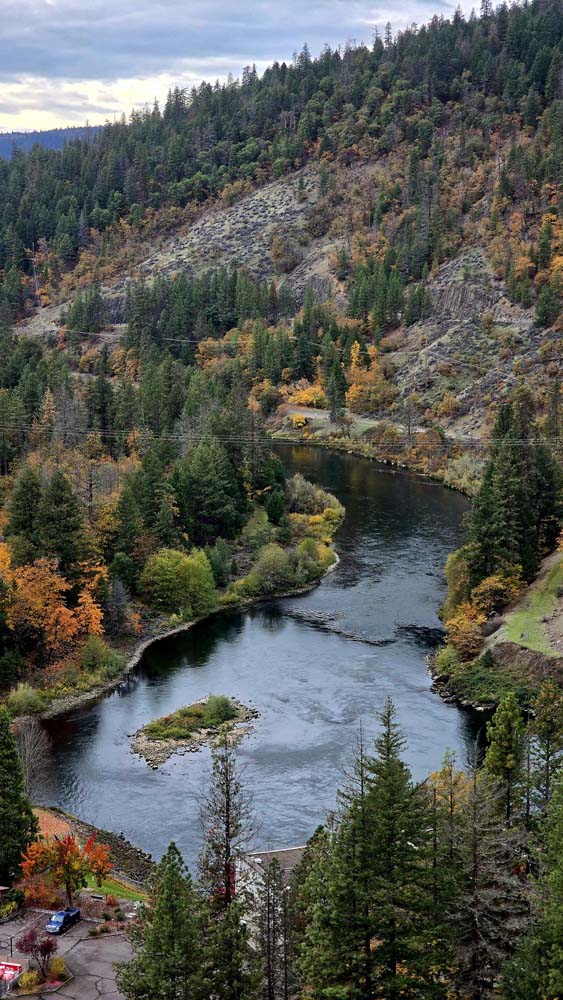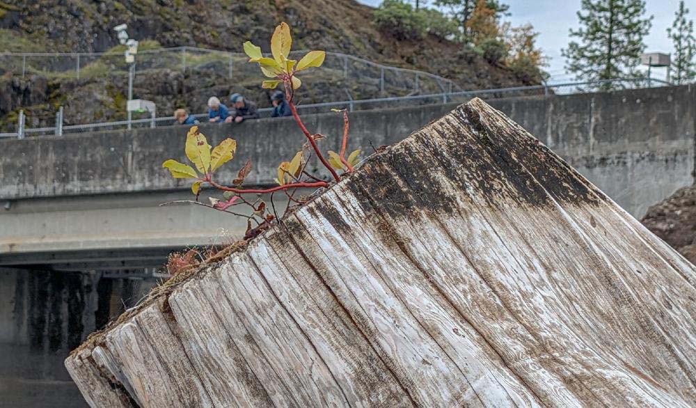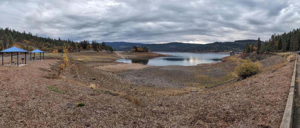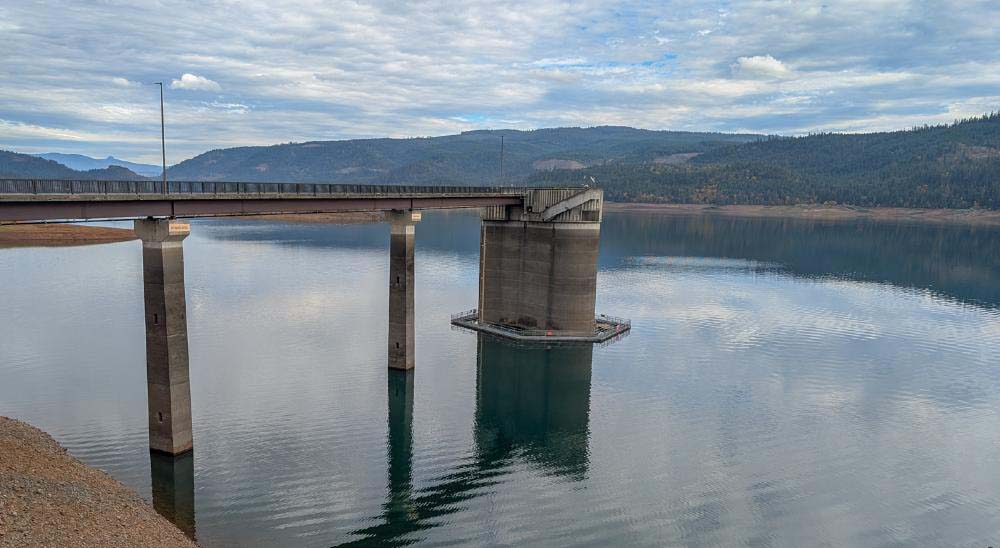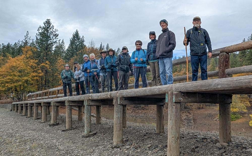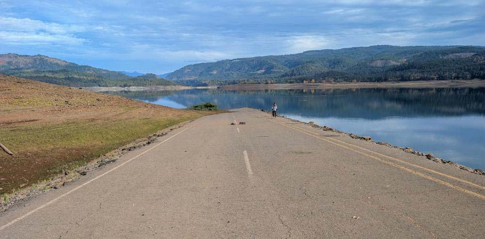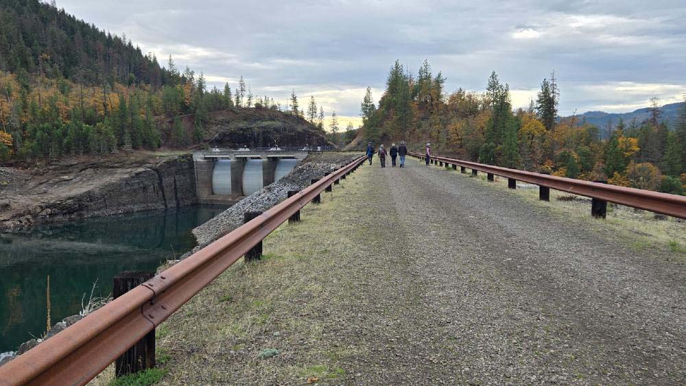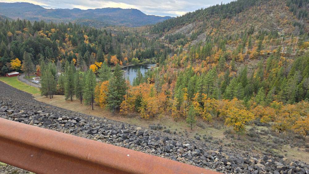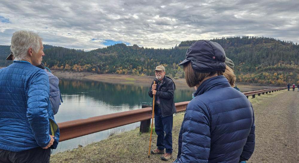 After lunch, we headed south through the parking lot to a paved trail over to the top of William Jess Dam. The 2 1/2 mile out and back was enjoyed by our group of twelve, with views of the Lake, the colors, the surrounding hills and peaks, the Dam's infrastructure, and the Rogue River flowing out below the dam.