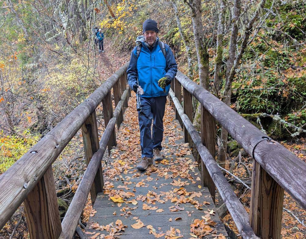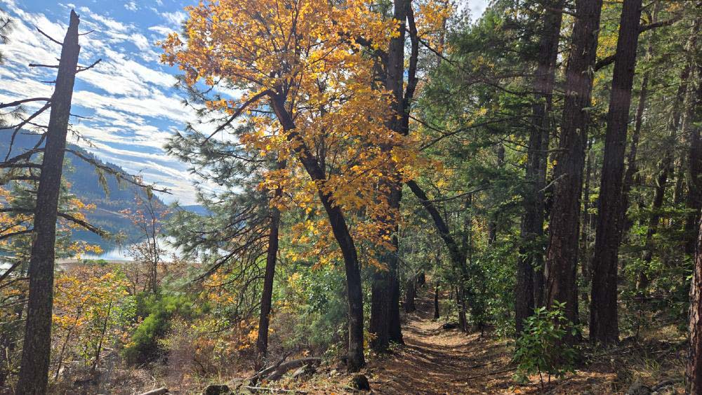 The Rogue Trail had both Oregon White Oaks and California Black Oaks along our route to the finger of Lost Creek entering the Lake. The Big Leaf Oaks were on branches overhead and carpeting the path.