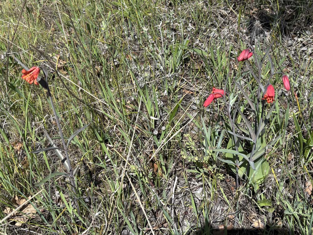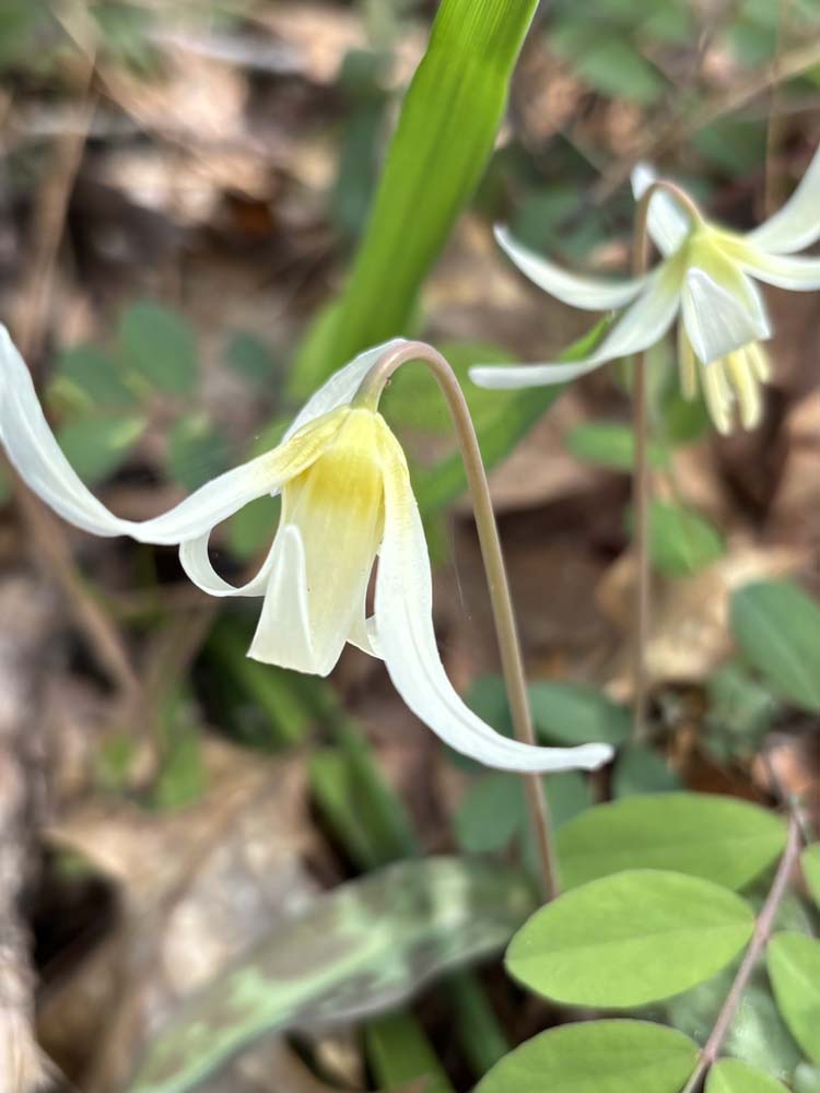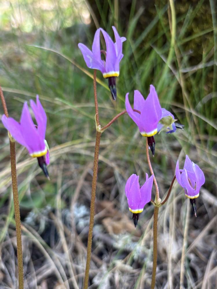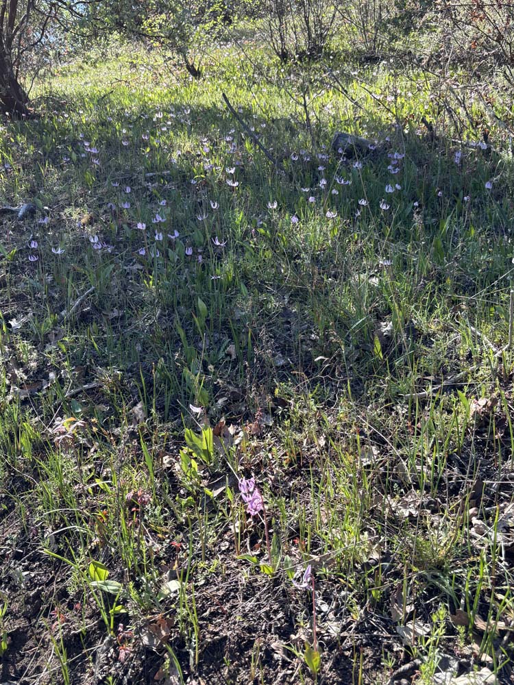 Along the path, you'll see wildflowers coming up. Among them are Shooting Stars, Fawn Lilies, Butter Cups, Hound's Tongue, and Scarlet Bells.