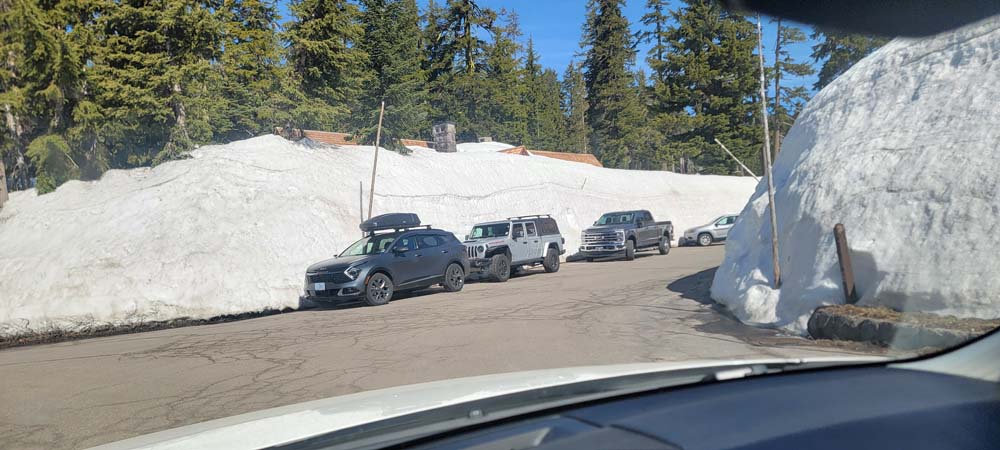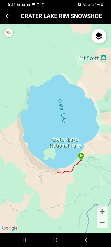 On Wednesday we had 13 people come out to snowshoe at Crater Lake National Park. We parked near the lodge but we were not able to go up the snow bank there because heavy equipment was removing snow. We walked a bit farther along the parking area then found a place to climb up and start our snowshoe along the rim.