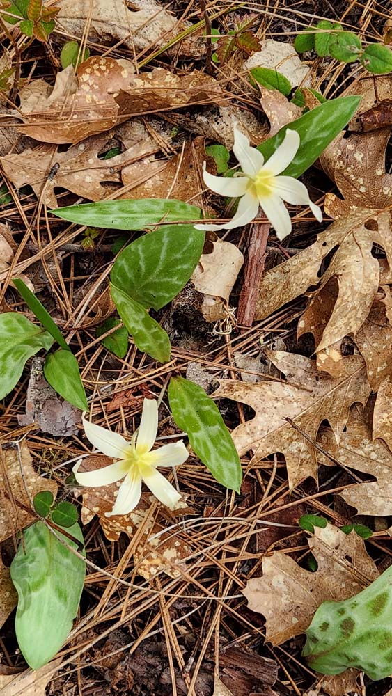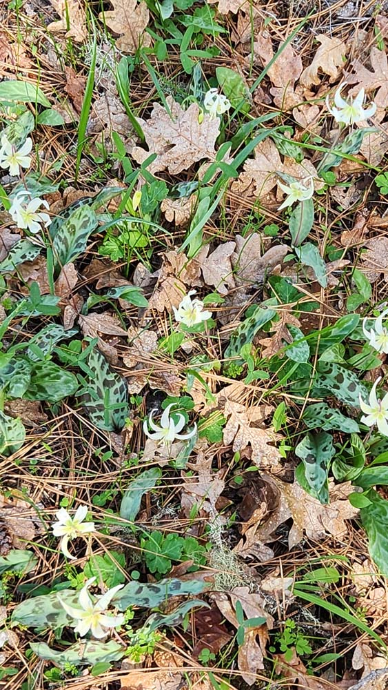 Along the path, you'll see wildflowers coming up. Among them are Shooting Stars, Fawn Lilies, Butter Cups, Hound's Tongue, and Scarlet Bells.