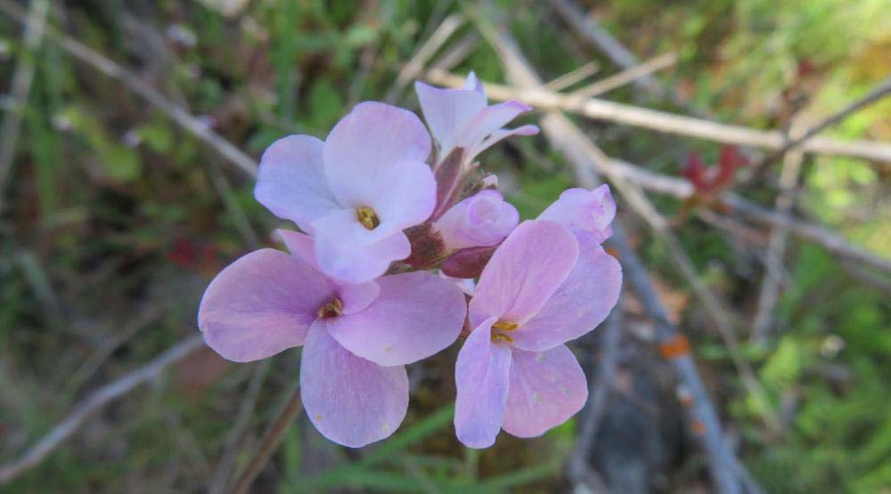 On this calm mild day, we headed across the top of the summit past the two communication towers to an old picnic table then out to the north-facing overlook. There we got our group picture sitting on various big rocks. And had a snack, since it was only 10:30.