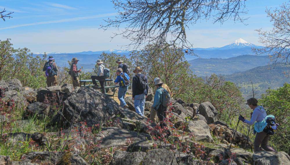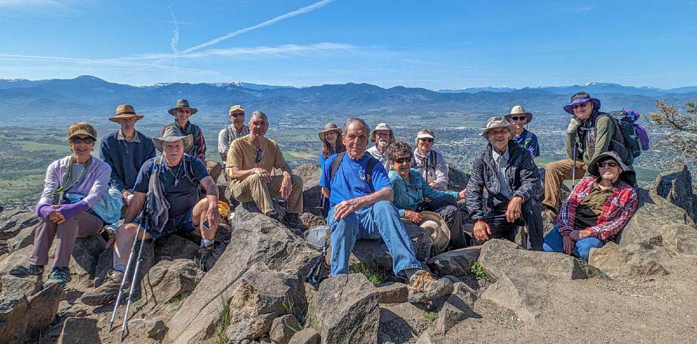 15 hikers met at the top parking lot on Roxy Ann Peak for a hike up to the summit. It was a beautiful spring day with views of the Rogue Valley and the surrounding mountains.